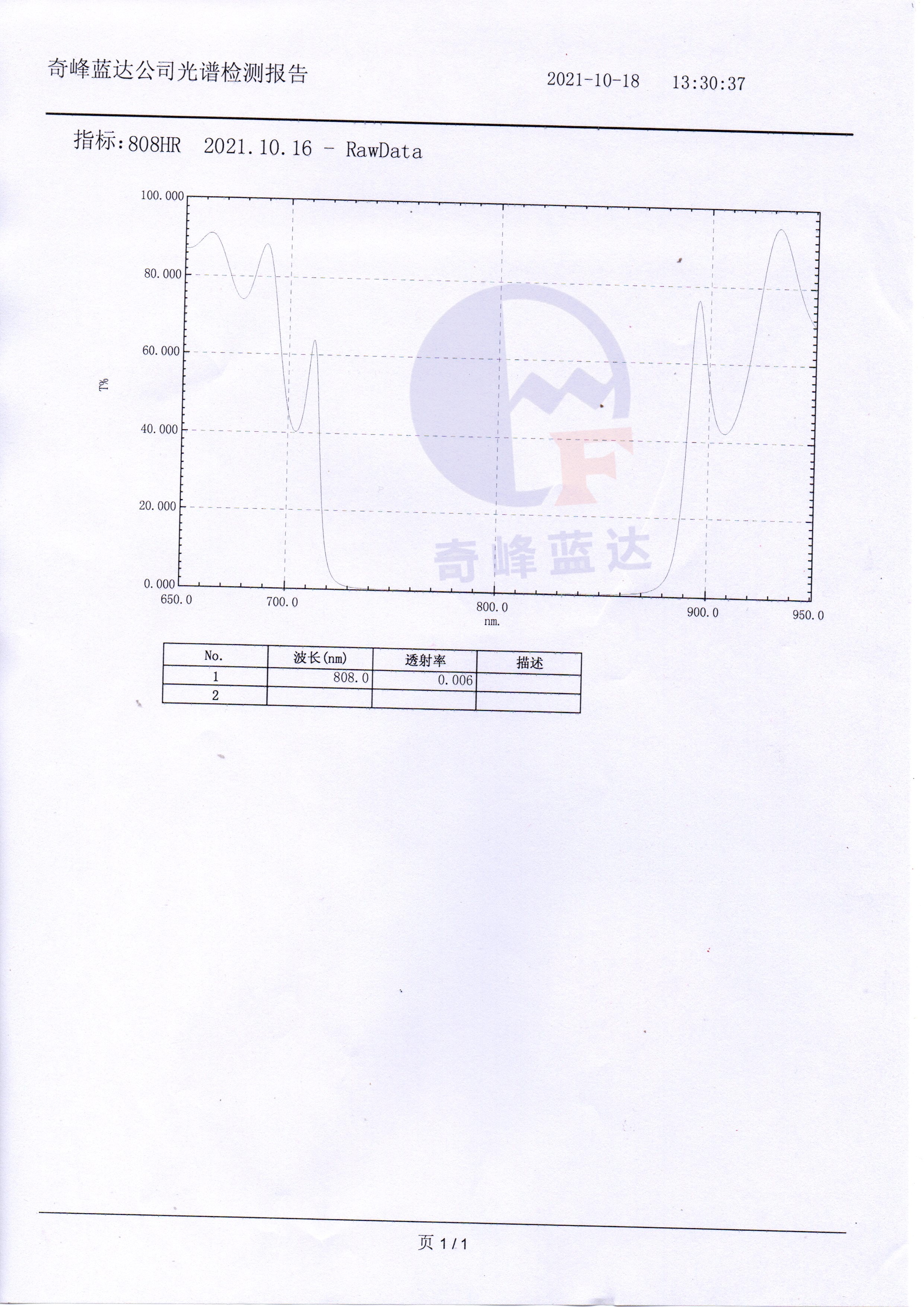 镀膜指标正面(S1)
