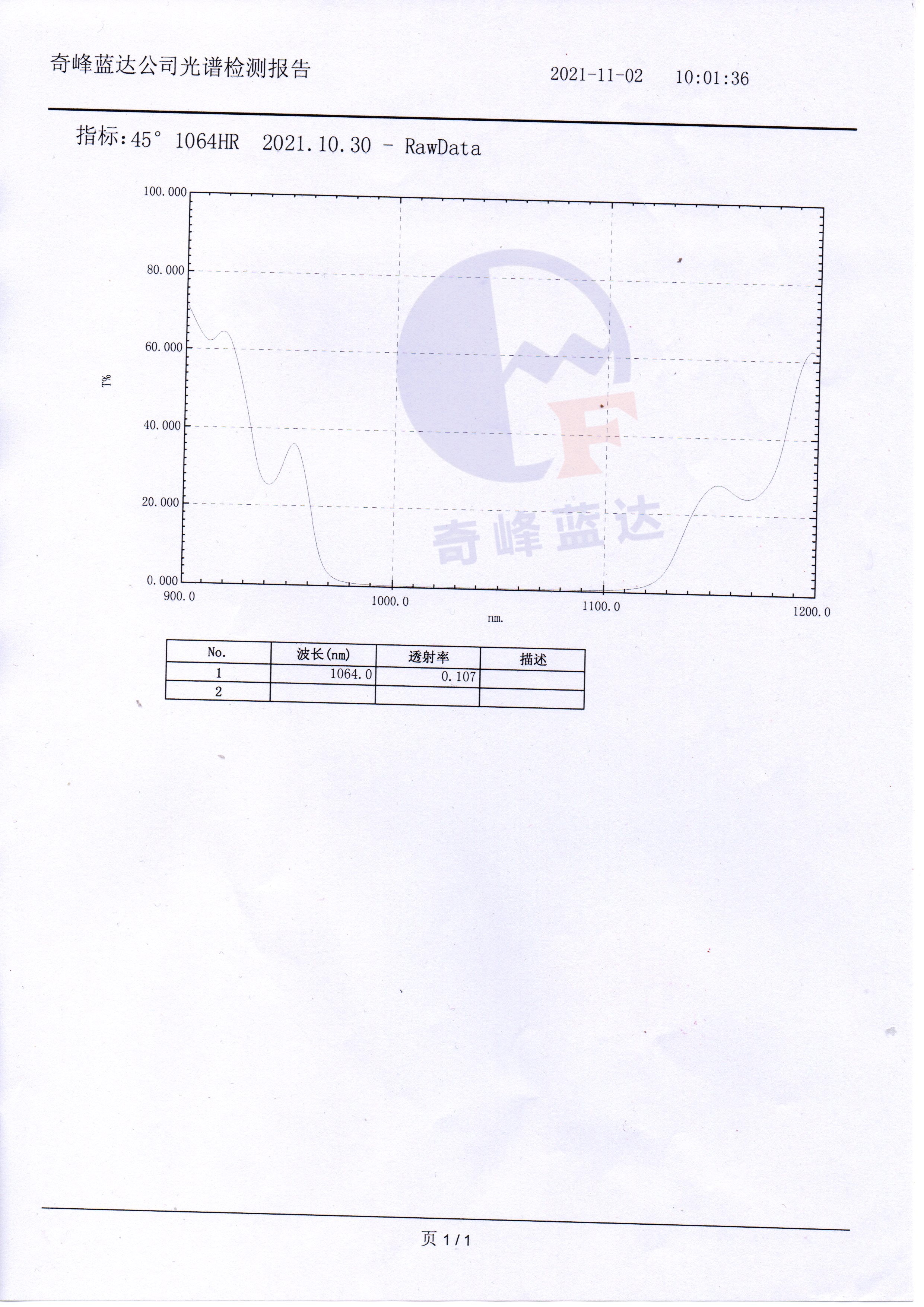 镀膜指标正面(S1)