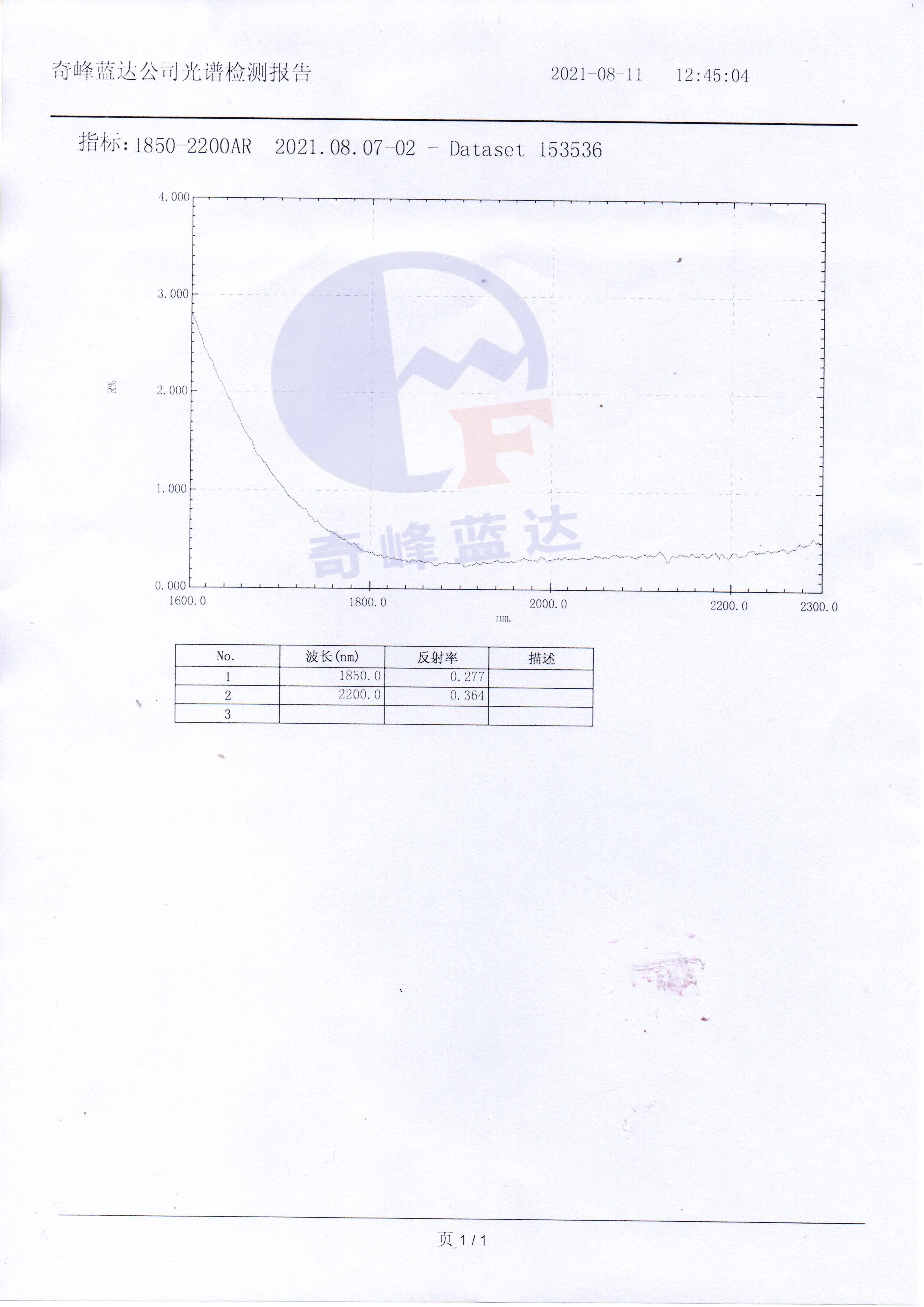 镀膜指标正面(S1)